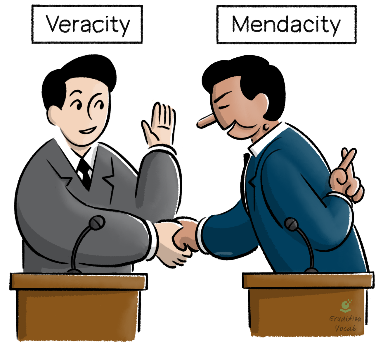 “Because of his long history of veracity, the candidate could be trusted to speak candidly during the midterm debate. Unfortunately, his opponent had the mendacity to bend every agreed upon rule.”