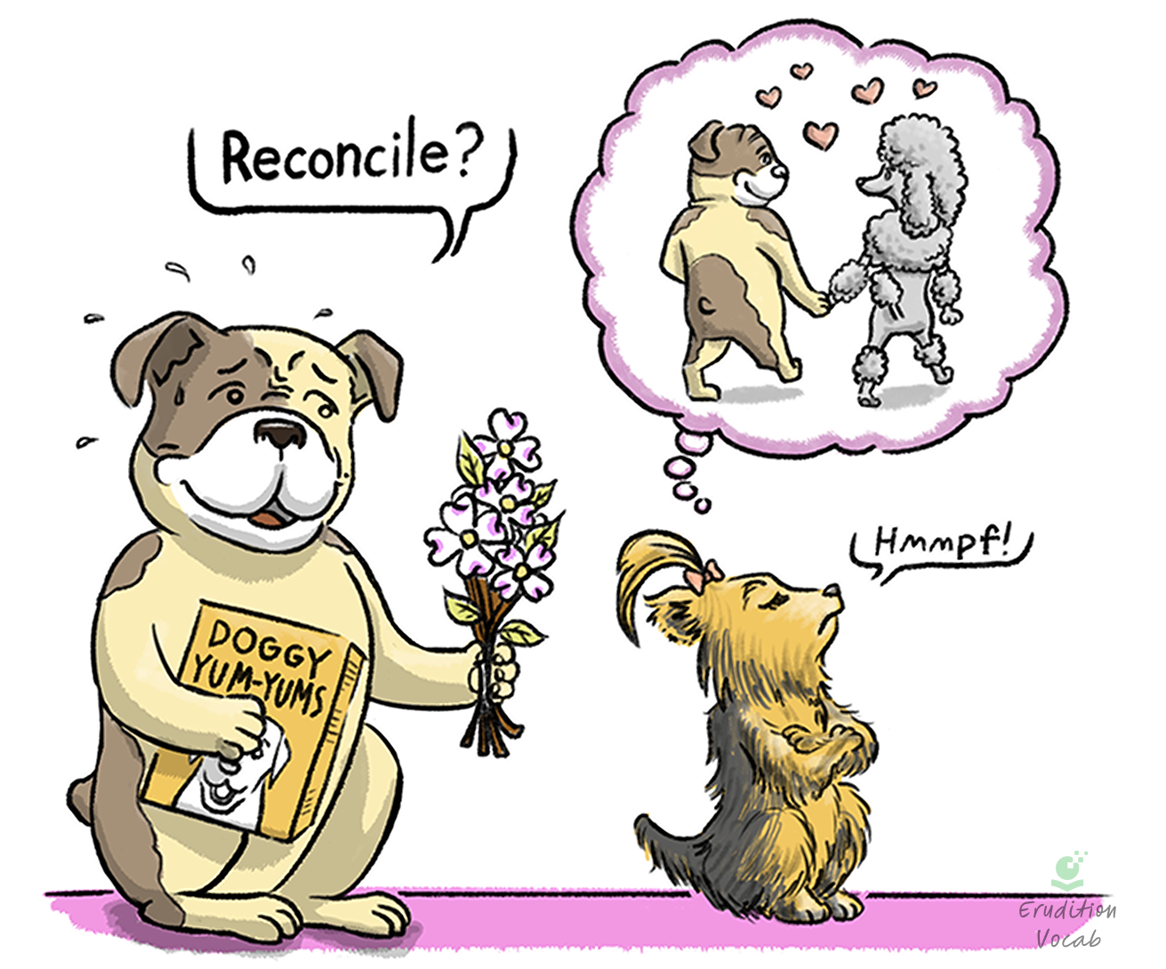 “Rover tried using a conciliatory approach to winning back Foo Foo’s heart, but she refused to be reconciled.”