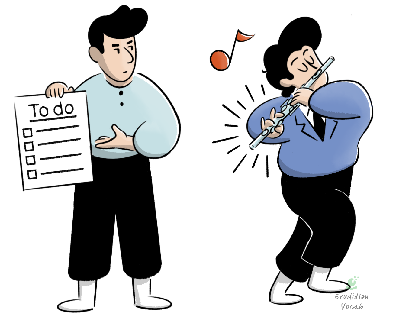 “The flutist flouts his responsibilities and plays the flute all day.”