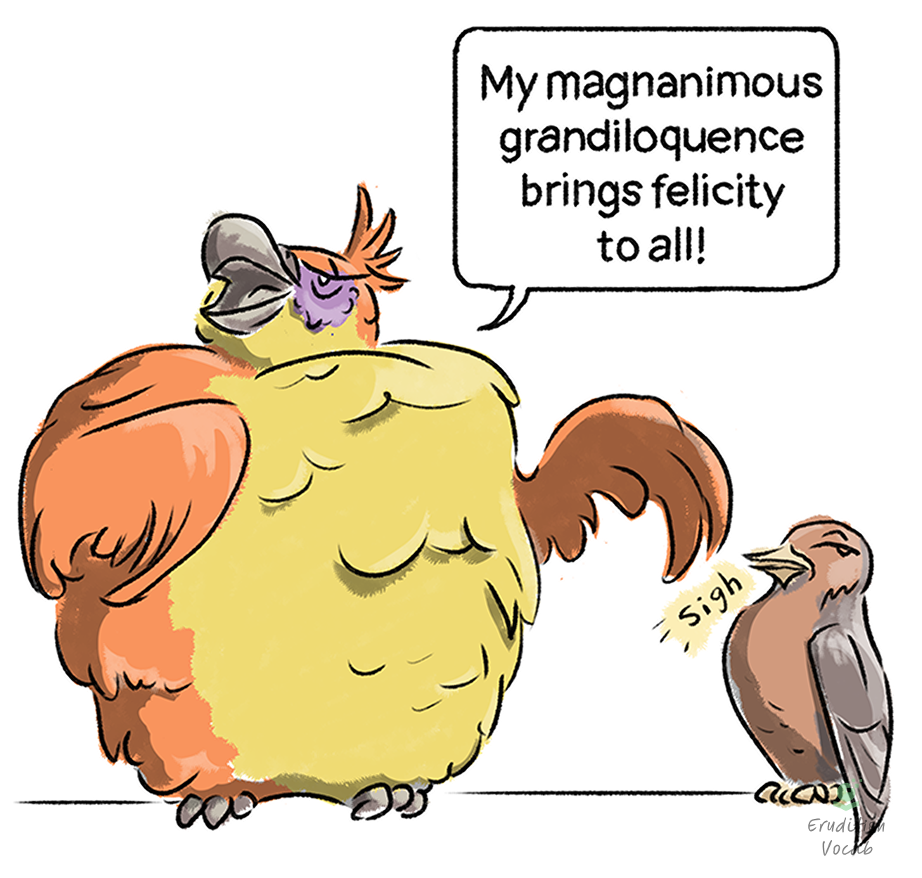 “The parrot was trained well, perhaps too well; he became so grandiloquent that even his fellow birds were annoyed.”