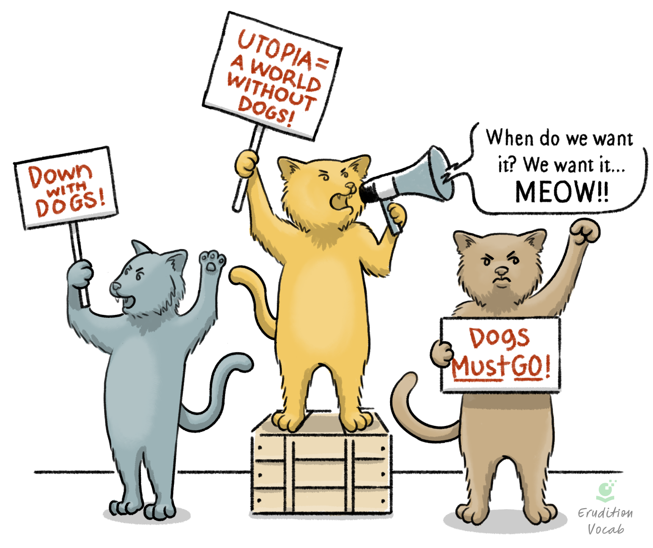 “Ever since befriending the gang of anti-dog ideologues, Fluffy did nothing with his time but push for absolute dog eradication.”
